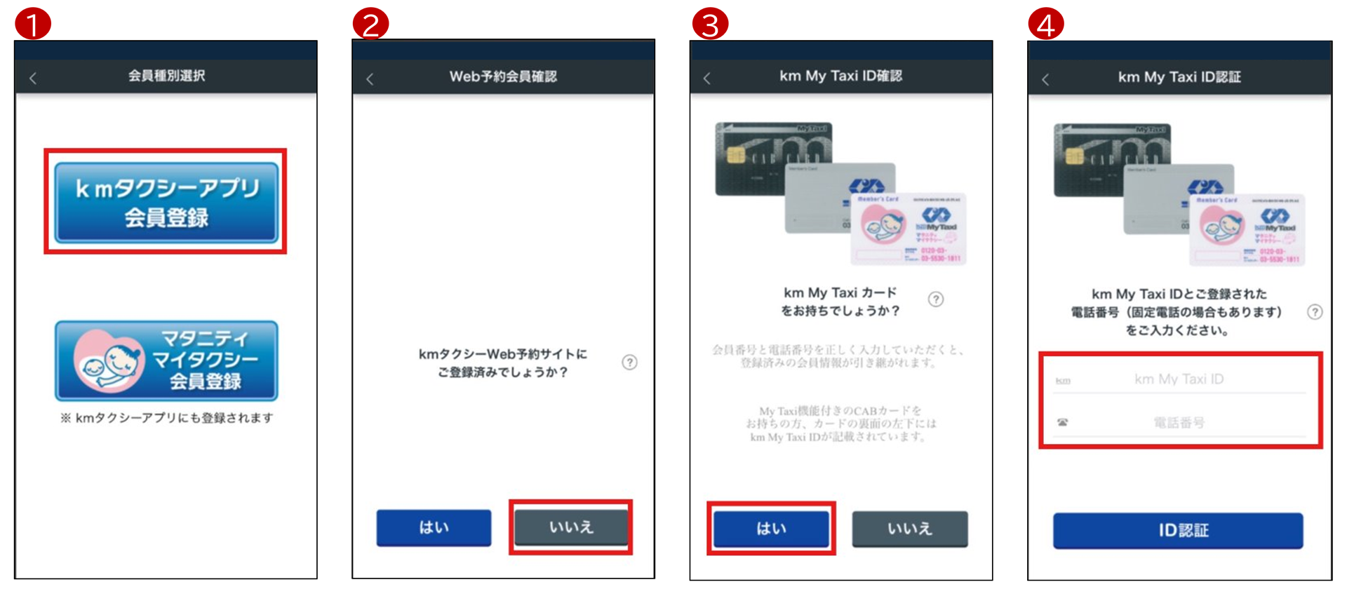 ③km My Taxiカードをお持ちでしょうか?で「はい」を選択